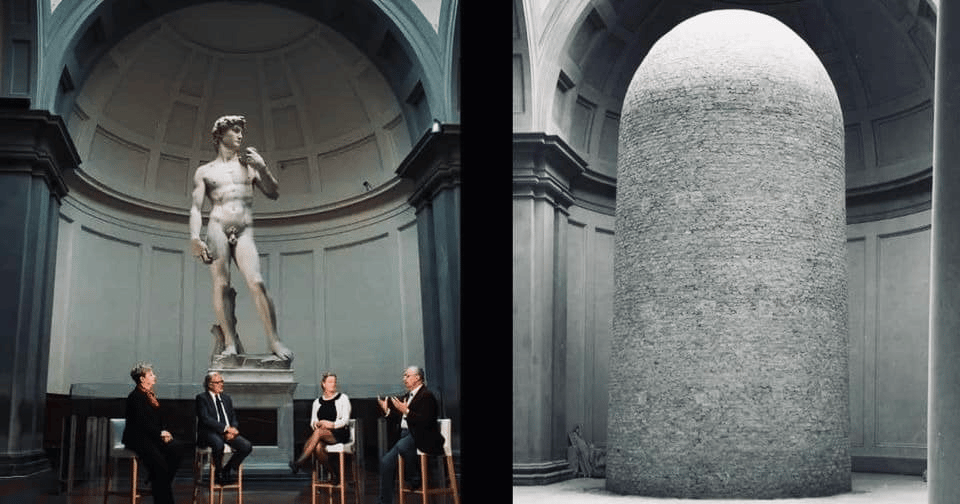 C. WWII threatened Michelangelo's David, located in Florence, Italy. Because the 17-foot marble statue was too massive to be relocated, it was encased in a custom brick "hive" in 1943 to protect it from air raid bomb damage. When the brick enclosure was carefully dismantled in 1945, the statue emerged dusty but unharmed.